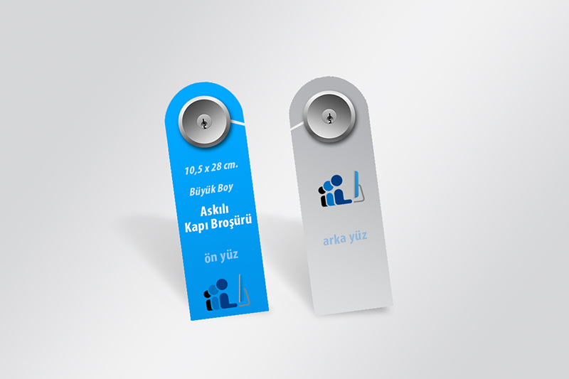 Kapı Askısı Broşürleri: Yine amaca uygun tanıtım yapısına göre şekillenen diğer bir tanıtım broşürü de daire kapılarına asılan broşür çeşididir. telematbaa.com da geniş bir ürün yalpazesine sahip tanıtım unsurudur.